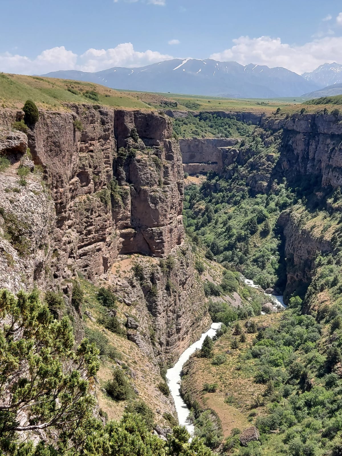 Aksu Canyon is located in the Aksu-Dzhabagly Nature Reserve, the oldest park in Central Asia, founded in 1926 in the Western Tien Shan mountains. The Сanyon is one of the largest and deepest canyons in Central Asia. The depth is from 300 to 500 meters, the distance between the upper edges is about 800 meters, and the length is more than 30 kilometers.