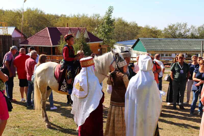 The guests will be acquainted with the life of nomads, with a national dwelling of Kazakhs - yurt, will enjoy master class on cooking Baursaks - a traditional flour product, cleaning and whipping wool, show with horses and horseback-riding.