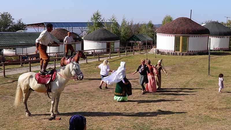 ✅ Hotel pick-up/drop-off ✅ Private transfer ✅ Theatrical show in national costumes with horses ✅ English-speaking show host ✅ Buffet lunch (meat is cooked and served separately) ✅ Water and tea ✅ Ethno-village admission tickets ❌ Special meals/drinks |